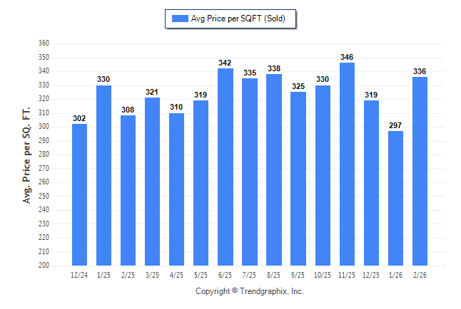February 2026 Average Sold Price per Square Footage was Neutral**