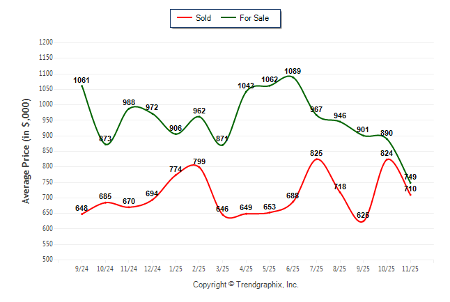 November 2025 Average For Sale Price was Depreciating and Average Sold Price was Neutral**