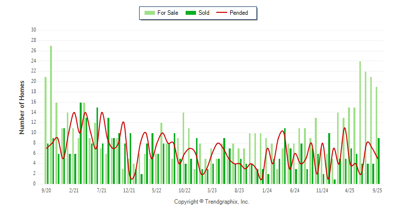 Curnt vs. Same Month 1 Yr Ago: For Sale up111.1% | Sold up28.6% | Pended down-37.5%