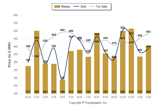 February 2026 Median Price was Neutral, Avg. For Sale Price was Appreciating, and Avg. Sold Price was Neutral**