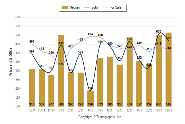 December 2025 Median Price was Appreciating, Avg. For Sale Price was Neutral, and Avg. Sold Price was Neutral**