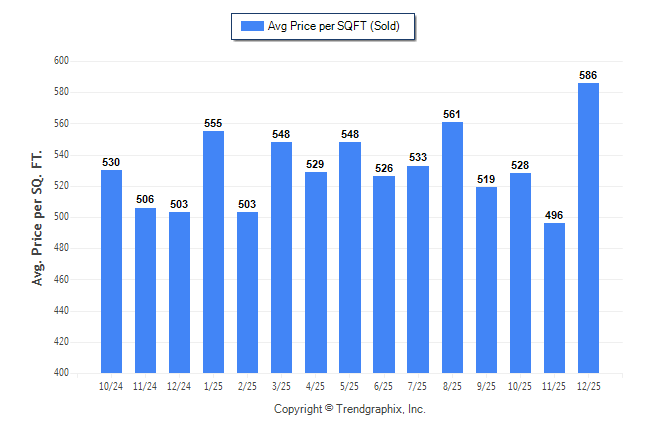 December 2025 Average Sold Price per Square Footage was Appreciating**