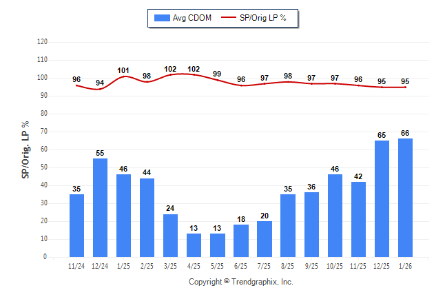 January 2026 Average Continuous Days on Market trend was Rising and Sold/Original List Price Ratio was Falling**