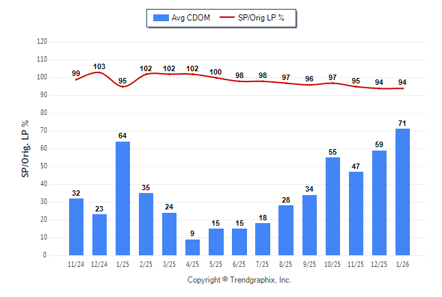 January 2026 Average Continuous Days on Market trend was Rising and Sold/Original List Price Ratio was Falling**