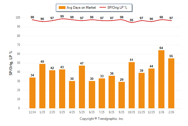 February 2026 Average Days on Market trend Remains Steady and Sold/Original List Price Ratio Remains Steady**