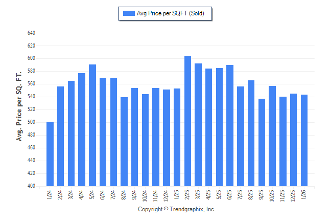 January 2026 Average Sold Price per Square Footage was Neutral**