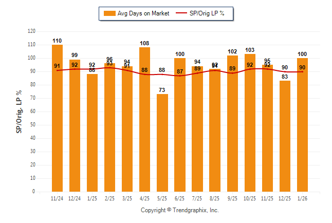 January 2026 Average Days on Market trend Remains Steady and Sold/Original List Price Ratio Remains Steady**