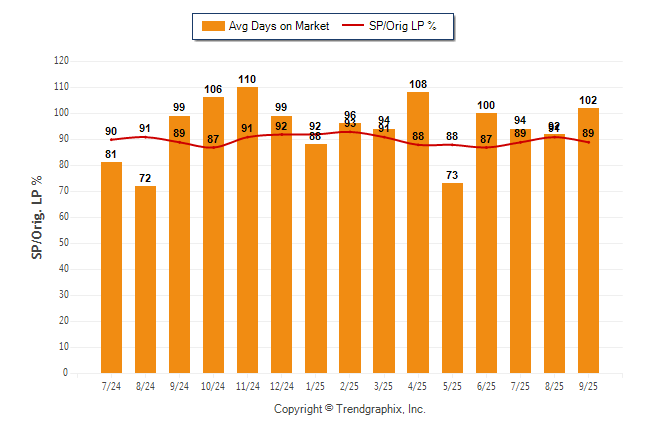 September 2025 Average Days on Market trend was Rising and Sold/Original List Price Ratio Remains Steady**