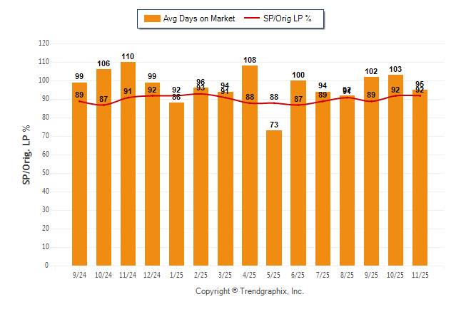 November 2025 Average Days on Market trend Remains Steady and Sold/Original List Price Ratio was Rising**