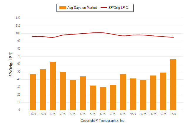 January 2026 Average Days on Market trend was Rising and Sold/Original List Price Ratio was Falling**