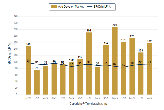 February 2026 Average Days on Market trend Remains Steady and Sold/Original List Price Ratio was Rising**