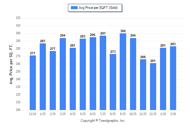 February 2026 Average Sold Price per Square Footage was Neutral**