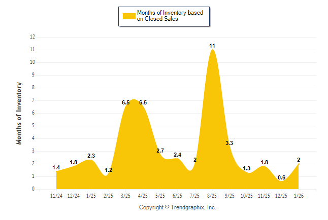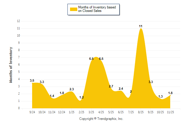 Curnt vs. Same Month 1 Yr Ago: Months of Inventory (Closed Sales)