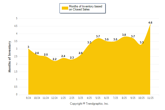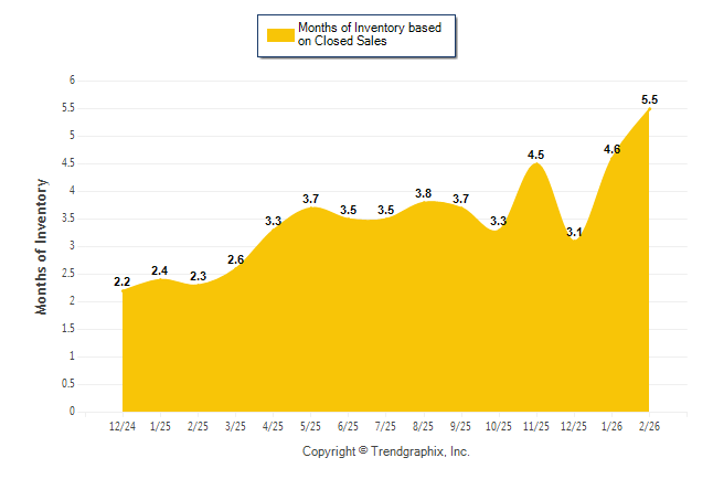Curnt vs. Same Month 1 Yr Ago: Months of Inventory (Closed Sales)