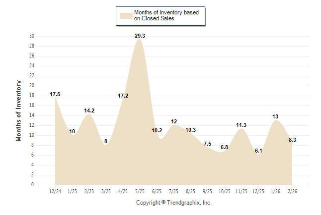 Curnt vs. Same Month 1 Yr Ago: Months of Inventory (Closed Sales)