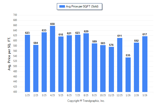 March 2026 Average Sold Price per Square Footage was Appreciating**