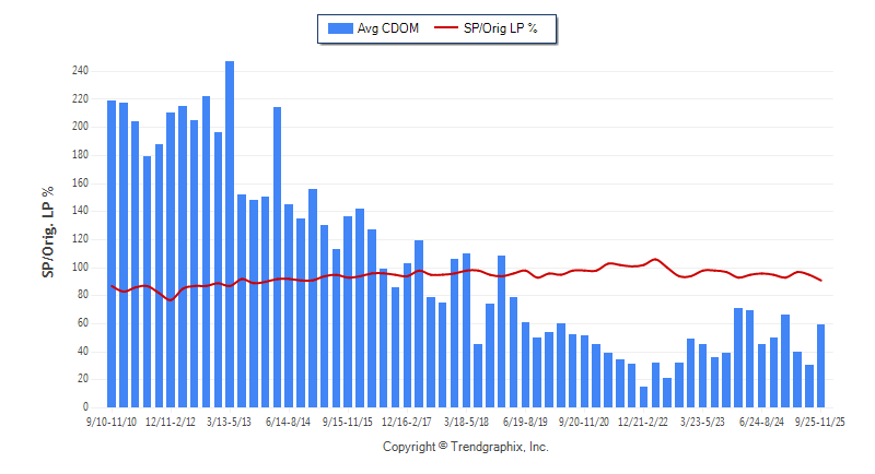 November 2025 (Quarterly) Average Continuous Days on Market trend Remains Steady and Sold/Original List Price Ratio was Falling**