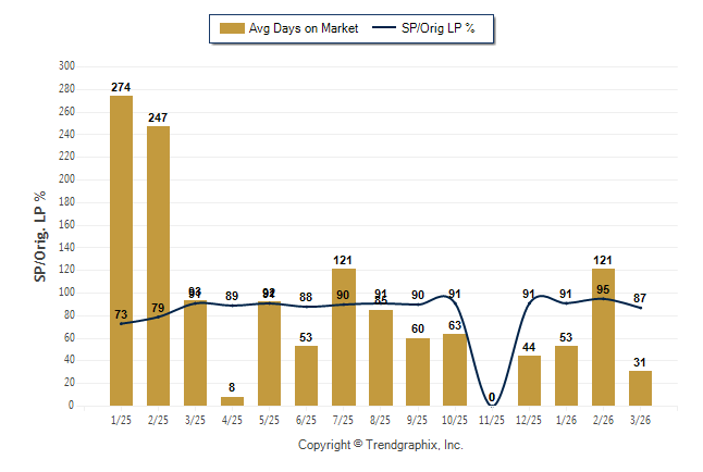 March 2026 Average Days on Market trend Remains Steady and Sold/Original List Price Ratio Remains Steady**