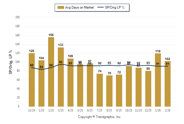 February 2026 Average Days on Market trend Remains Steady and Sold/Original List Price Ratio was Falling**