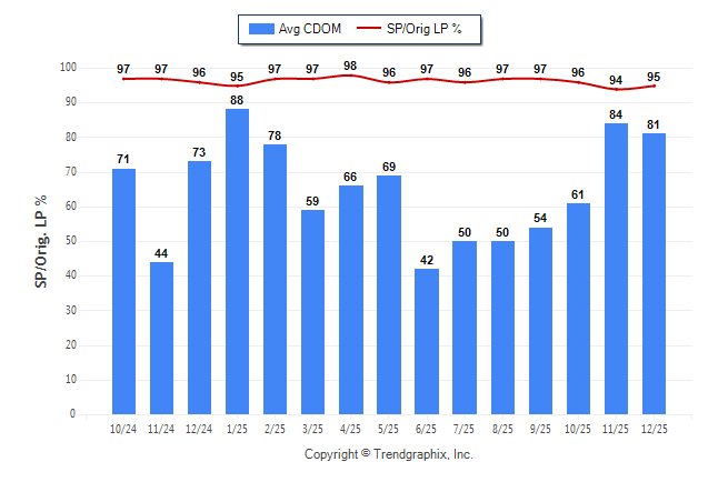 December 2025 Average Continuous Days on Market trend Remains Steady and Sold/Original List Price Ratio Remains Steady**