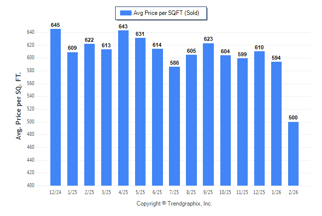 February 2026 Average Sold Price per Square Footage was Depreciating**