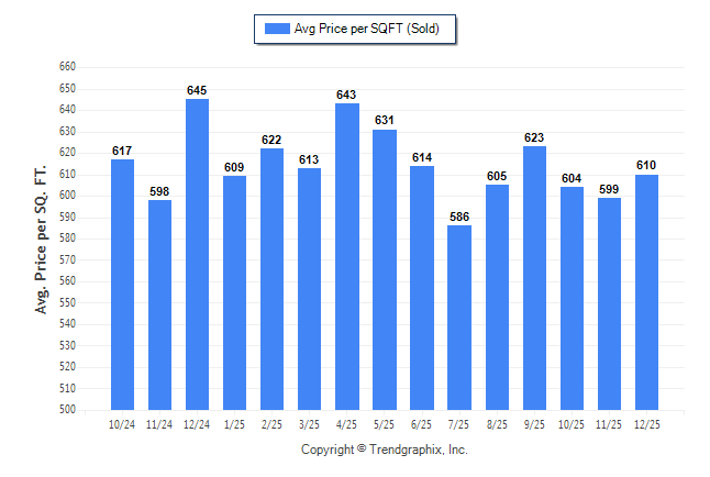 December 2025 Average Sold Price per Square Footage was Appreciating**