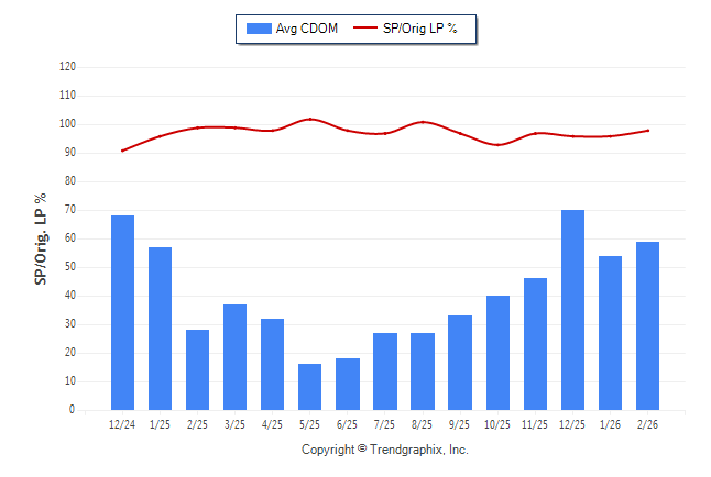 February 2026 Average Continuous Days on Market trend Remains Steady and Sold/Original List Price Ratio was Rising**