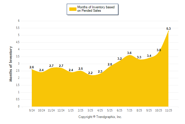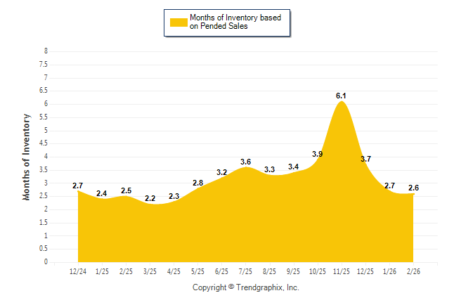 Curnt vs. Same Month 1 Yr Ago: Months of Inventory (Pended Sales)