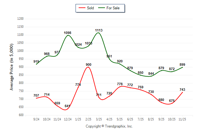 November 2025 Average For Sale Price was Appreciating and Average Sold Price was Neutral**