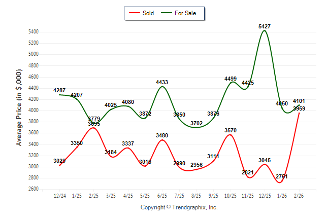 February 2026 Average For Sale Price was Neutral and Average Sold Price was Appreciating**