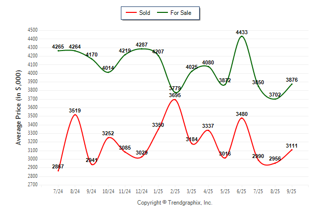 September 2025 Average For Sale Price was Neutral and Average Sold Price was Neutral**