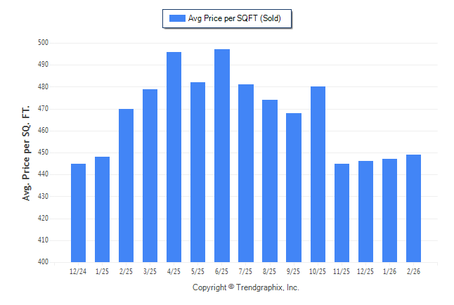 February 2026 Average Sold Price per Square Footage was Neutral**