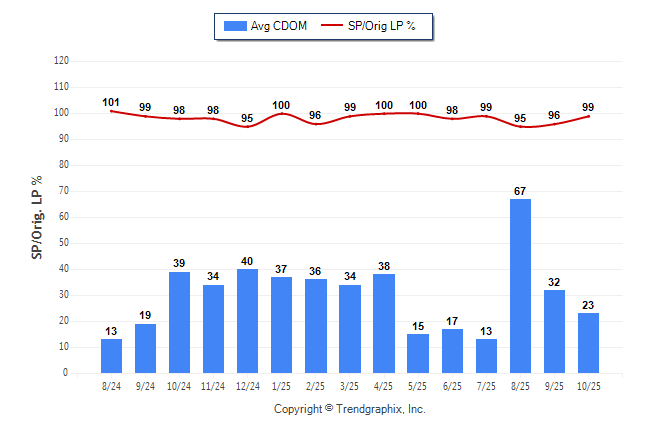 October 2025 Average Continuous Days on Market trend Remains Steady and Sold/Original List Price Ratio Remains Steady**