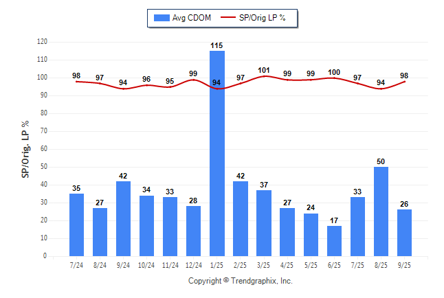 September 2025 Average Continuous Days on Market trend Remains Steady and Sold/Original List Price Ratio Remains Steady**