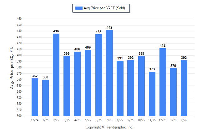 February 2026 Average Sold Price per Square Footage was Neutral**