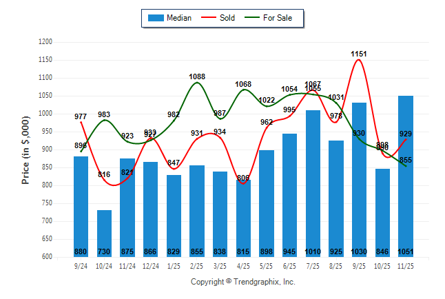 November 2025 Median Price was Appreciating, Avg. For Sale Price was Depreciating, and Avg. Sold Price was Neutral**