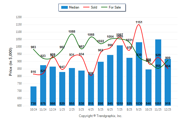 December 2025 Median Price was Neutral, Avg. For Sale Price was Neutral, and Avg. Sold Price was Depreciating**