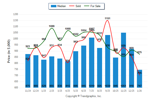 January 2026 Median Price was Neutral, Avg. For Sale Price was Neutral, and Avg. Sold Price was Depreciating**