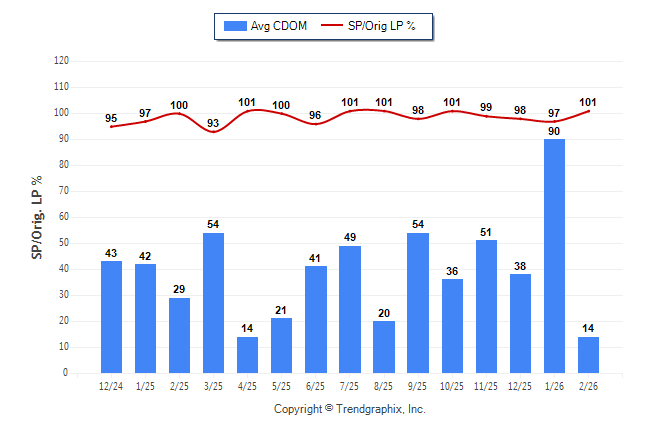 February 2026 Average Continuous Days on Market trend Remains Steady and Sold/Original List Price Ratio Remains Steady**