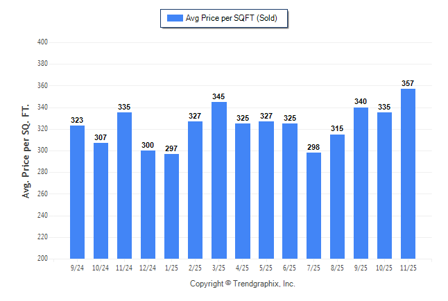 November 2025 Average Sold Price per Square Footage was Appreciating**