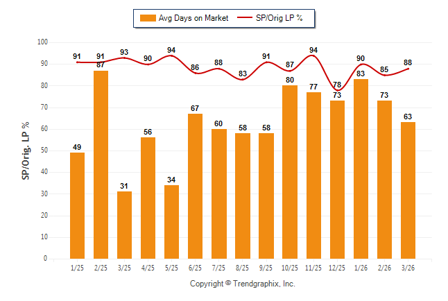 March 2026 Average Days on Market trend was Falling and Sold/Original List Price Ratio Remains Steady**