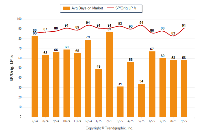 September 2025 Average Days on Market trend Remains Steady and Sold/Original List Price Ratio Remains Steady**