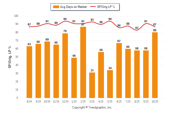 October 2025 Average Days on Market trend was Rising and Sold/Original List Price Ratio Remains Steady**
