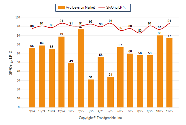 November 2025 Average Days on Market trend Remains Steady and Sold/Original List Price Ratio was Rising**
