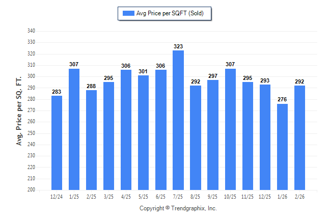 February 2026 Average Sold Price per Square Footage was Neutral**