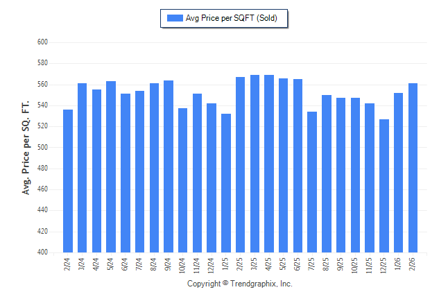 February 2026 Average Sold Price per Square Footage was Appreciating**
