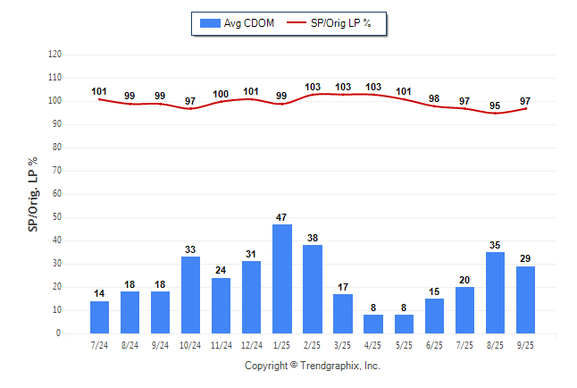 September 2025 Average Continuous Days on Market trend Remains Steady and Sold/Original List Price Ratio Remains Steady**