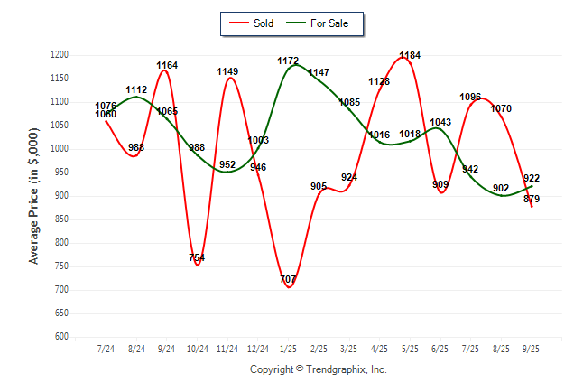September 2025 Average For Sale Price was Neutral and Average Sold Price was Depreciating**