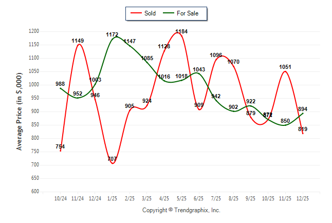 December 2025 Average For Sale Price was Neutral and Average Sold Price was Depreciating**