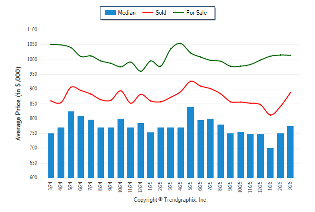 March 2026 Median Price was Neutral, Avg. For Sale Price was Neutral, and Avg. Sold Price was Appreciating**